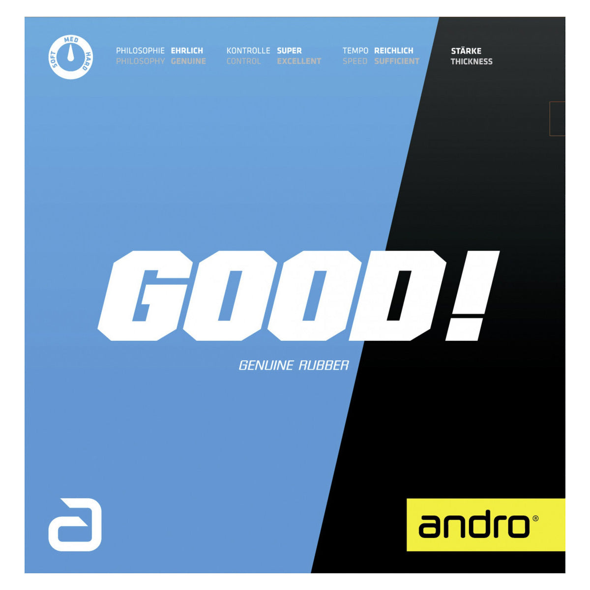 Andro Good! – een klassieke rubber met ongelooflijk gevoel en veel controle. Gewoon goed! De medium spons garandeert een uitstekende balans tussen snelheid en balgevoel. Het spinrijke toplaag is ontworpen voor een solide topspin- en blokstijl. Andro Good! – ontwikkeld voor spelers met traditionele speelstijlen en jonge spelers die hun eerste stappen in tafeltennis zetten.