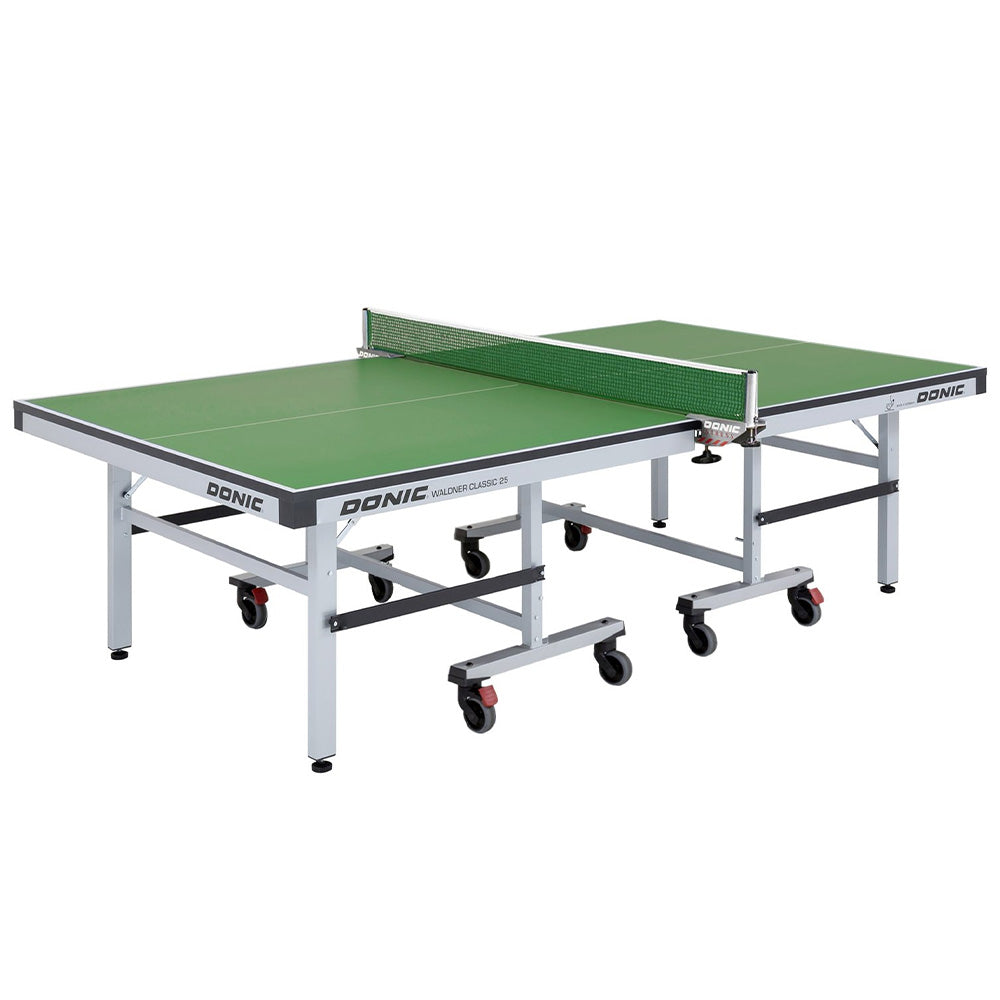 De Waldner Classic 25 tafeltennistafel is een ITTF-goedgekeurde wedstrijdtafel met een 25 mm dikke speeloppervlak voor een perfecte balstuit. Elke helft van de tafel is voorzien van een apart, stabiel automatisch onderstel en een veilig vergrendelingssysteem, wat zorgt voor zowel stabiliteit als veiligheid tijdens het gebruik.