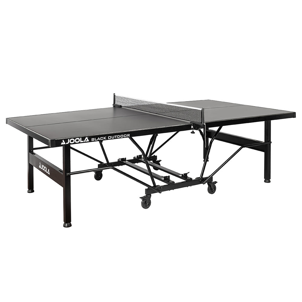 De Joola Black Outdoor tafeltennistafel is een weerbestendige, tafel-uit-een-stuk die opvalt door het strakke, zwarte design en uitzonderlijke mobiliteit. Beide tafelhelften kunnen worden ingeklapt voor eenvoudige verplaatsing in één geheel. Het 6 mm dikke tafelblad van aluminium composietmateriaal is zorgvuldig geverfd en biedt uitstekende balstuitprestaties. Dankzij de vier 10 cm transportwielen is de tafel eenvoudig te verplaatsen, terwijl verstelbare tafelpoten zorgen voor stabiliteit op oneffen oppervlakken. Beide tafelhelften zijn afzonderlijk inklapbaar voor solospel. Een weerbestendig net met schroefmechanisme wordt meegeleverd.