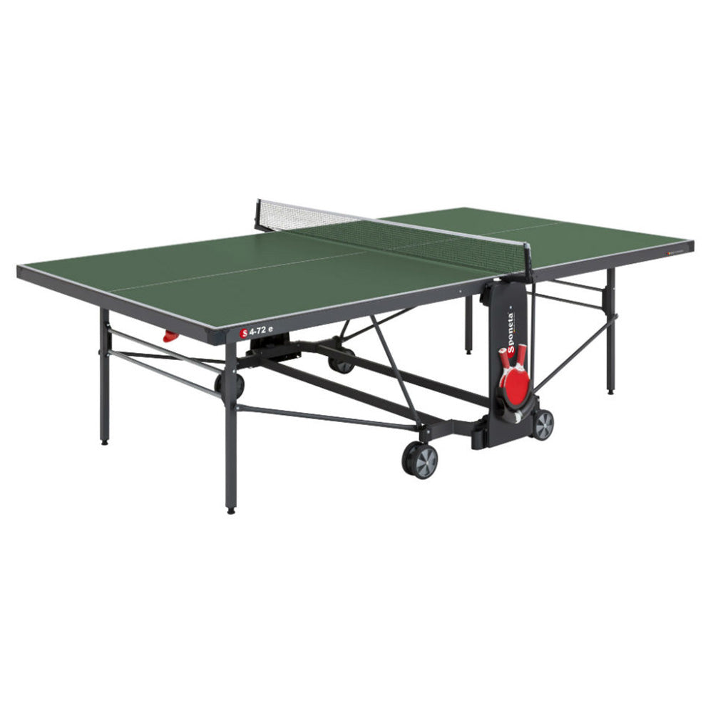 De Sponeta S4-72e Line Outdoor tafeltennistafel is ontworpen voor buitenactiviteiten en biedt waterbestendigheid en duurzaamheid onder diverse weersomstandigheden. Deze tafel is mobiel en opvouwbaar, waardoor hij gemakkelijk op te bergen en te verplaatsen is. Ideaal voor zowel recreatieve als intensievere trainingssessies. De tafel komt met een zwart net en biedt de mogelijkheid tot een playback opstelling voor solo-oefeningen. De speeloppervlakte is uitgevoerd in een levendige groene kleur die goed zichtbaar is in een buitenomgeving.