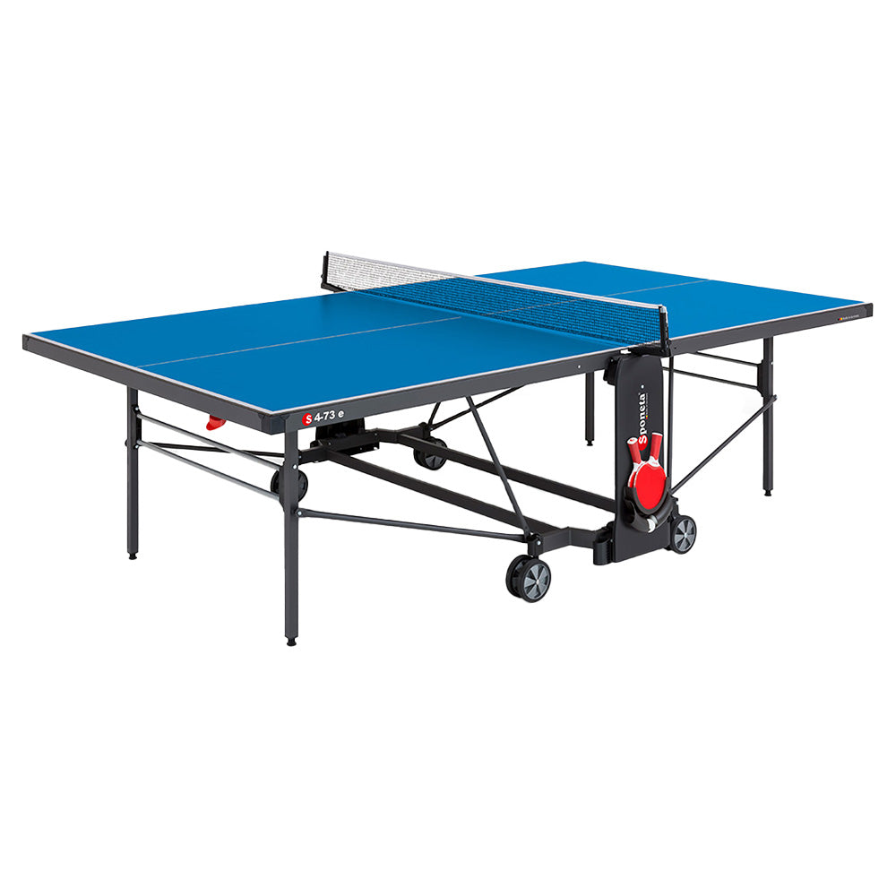 De Sponeta S4-73e line Outdoor is een robuuste tafeltennistafel ontworpen voor buitengebruik. Deze weerbestendige tafel is inclusief een zwart net, wat het mogelijk maakt om direct te beginnen met spelen, ongeacht het weer. Het mobiele en opvouwbare ontwerp zorgt ervoor dat de tafel eenvoudig kan worden verplaatst en opgeborgen. Bovendien maakt de playback-functie het mogelijk om ook alleen te trainen, wat de S4-73e een veelzijdige keuze maakt voor zowel recreatie als training. De tafel heeft een aantrekkelijk blauw tafelblad.