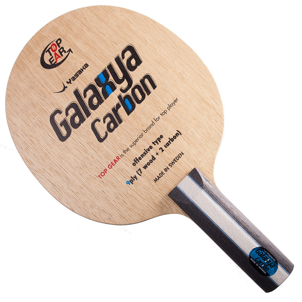 Galaxya Carbon is een supersnel frame gebaseerd op het snelle 7-laags Galaxya-frame. De twee lagen koolstofvezel gecombineerd met de drie houten middelste lagen verbeteren de snelheidseigenschappen. De twee buitenste fineerlagen zijn medium zacht, speciaal gekozen om een beter balgevoel aan het frame toe te voegen. De Galaxya Carbon wordt geleverd met een dunne dubbellaagse laklaag en aantrekkelijk printontwerp.