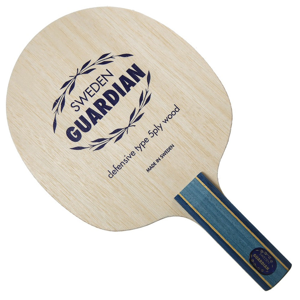 Het frame Sweden Guardian, geproduceerd in de beroemde bladfabriek in Tranås, Zweden, is gebaseerd op de klassieke Zweedse allround constructie, bekend om zijn goede controle- en gevoelseigenschappen. Dit frame heeft echter twee iets hardere binnenste lagen en twee iets zachtere buitenste fineerlagen. In combinatie met de speciale vorm biedt het frame Sweden Guardian interessante speeleigenschappen voor modern defensief spel. Gelakt.